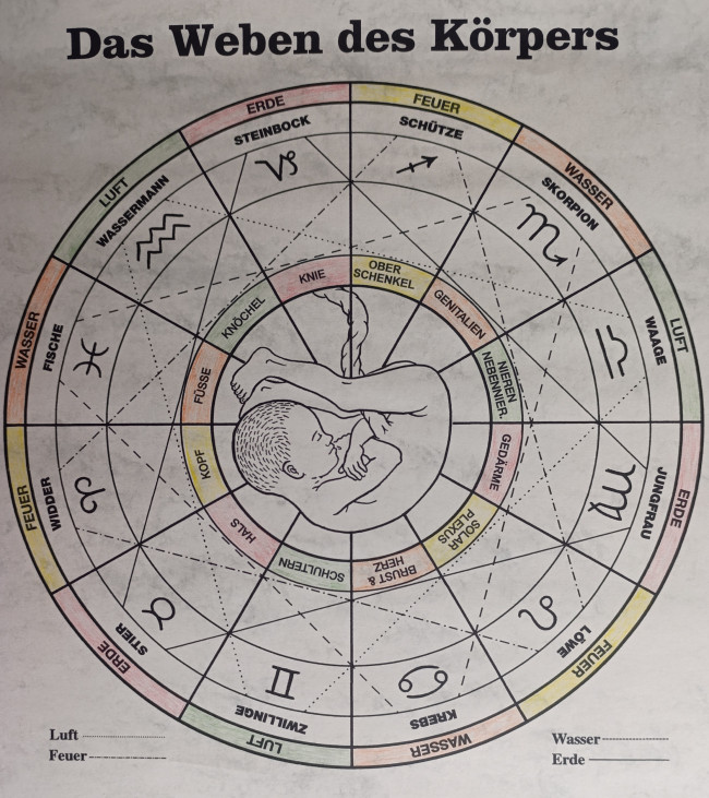 Die feinstofflichen Energien und Kräfte der Elemente Äther, Luft, Feuer, Wasser und Erde sind bestimmten Organen und Körperbereichen sowie seelischen und emotionalen Empfindungen und Fähigkeiten zugeordnet.